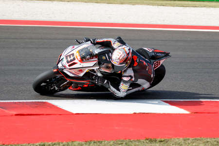 ミサノ アドリアティコ イタリア 6 月 日 アプリリア Rsv4 Rf のアプリリア レーシング 赤い悪魔 スーパー バイクのフリー走行中にアクションのジョルディ トーレスによって駆動される Fim スーパー バイク世界選手権 6 月 日 ミサノ ワールド